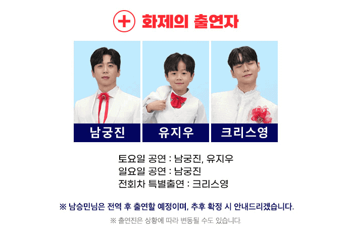 ※ 출연진은 상황에 따라 변경될 수 있습니다.