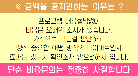 바디슬림 홈다이어트 가격은 따로 공지된 것이 현재는 없습니다. 상담 신청 게시판 또는 빠른 상담 게시판에 상담 신청을 하시게 되면 유선으로 프로그램 내용 설명과 함께 비용도 알려주신다고 합니다. 단, 단순 비용문의는 정중히 사절하신다고 합니다.