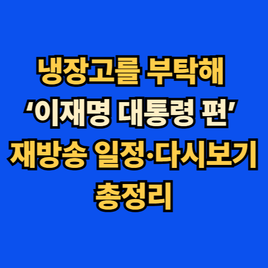 최근 방영된 ‘냉장고를 부탁해’ 이재명 대통령 편이 주목을 받고 있습니다. 본 방송을 놓친 분들을 위해 재방송 시간과 다시보기 이용법, 주요 장면과 시청 포인트를 한눈에 정리했습니다. 방송 시간은 변경될 수 있으니 아래 공식 링크로 최종 확인해 주세요.