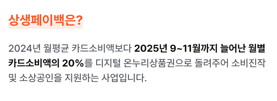 정부가 추진하는 상생페이백 사업은 국민 소비 진작과 소상공인 지원을 위한 대표적인 정책입니다. 2024년 월평균 카드 사용액보다 2025년 9월부터 11월까지 늘어난 소비액의 20%를 디지털 온누리