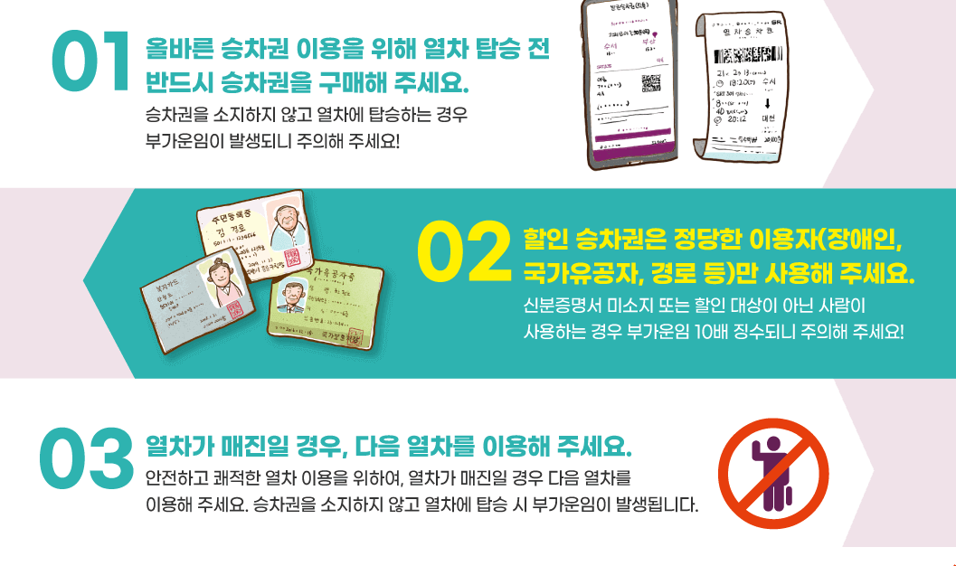 - 모바일 이용 시 승차권 화면을 준비하여 검표 요청에 제시합니다.