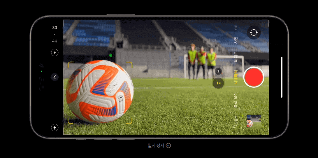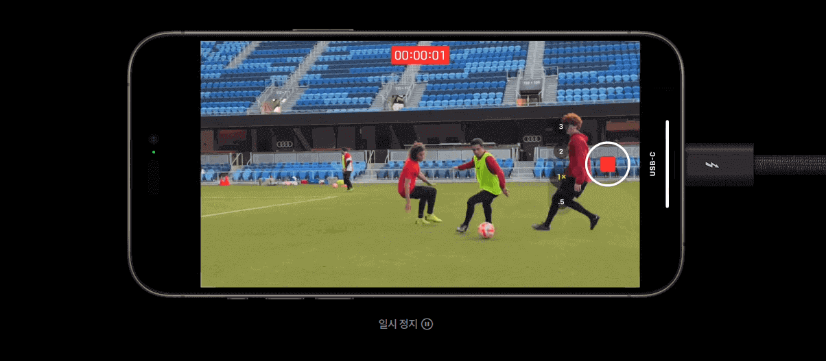 아이폰 15 프로에서는 ProRes 동영상을 촬영해 외장 스토리지에 바로 저장할 수 있습니다. 덕분에 촬영장에 아이폰 카메라를 세팅해 둔 채로 드라이브만 재빨리 교체할 수 있습니다. 할리우드 스타일의 슬로 모션으로 촬영하고 싶다면 외장 SSD를 연결해 초당 60 프레임의 ProRes 4K 동영상으로 촬영하시면 됩니다.