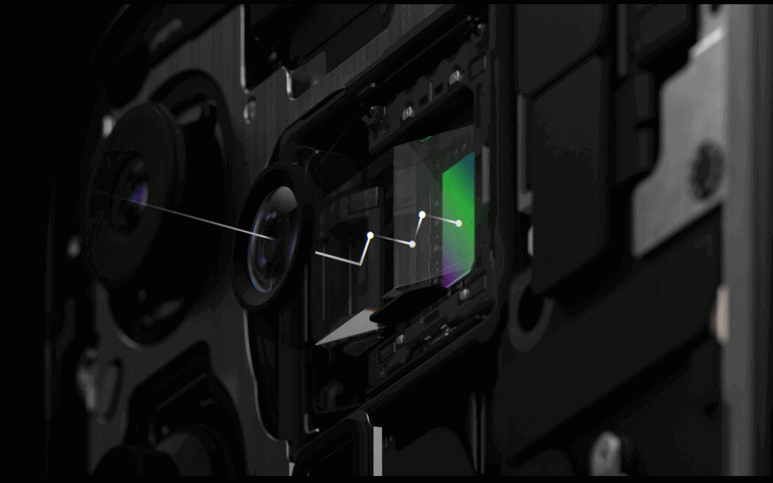 애플이 제작한 최첨단 테트라프리즘 디자인을 소개합니다. 렌즈 아래에 탑재되는 폴디드 글래스 구조로, 그 이름에서 알 수 있듯 렌즈로 들어온 빛을 네 번 반사시키는 것이 특징입니다. 이러한 반사 과정을 통해 빛이 동일한 공간 안에서 더 긴 거리를 이동하게 되면서 멀리 떨어진 피사체까지 선명히 담을 수 있는 긴 초점 거리가 확보됩니다. 테트라프리즘 디자인이 그 진가를 발휘할 수 있도록 하기 위해 우리는 세 방향으로 모두 움직이는 3D 센서 시프트 광학 이미지 흔들림 보정(OIS) 및 오토포커스 모듈도 개발했습니다. 이는 아이폰이 만든 가장 앞선 흔들림 보정 시스템으로 전보다 두 배나 많은 미세보정을 거칩니다.