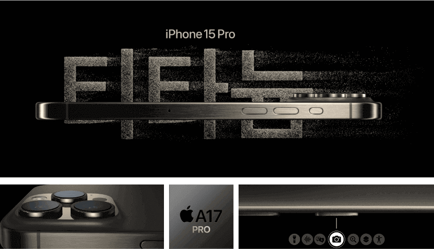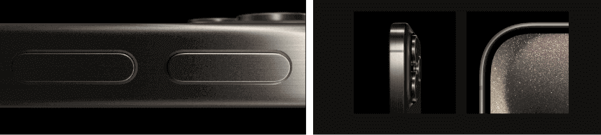 ● 아이폰 사상 최초로 항공우주 등급의 티타늄 디자인을 채택한 아이폰 15 프로(iPhone 15 Pro). 화성 탐사선에 쓰이는 소재와 동일한 합금을 사용했습니다.