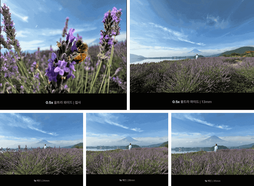 이제 메인 카메라의 기본 초점 거리를 24mm, 28mm, 35mm 중에서 선택할 수 있어 장비를 추가로 더 들고 다녀야 할 부담이 없어집니다. 컴퓨테이셔널 포토그래피의 힘이란 바로 이런 것입니다.