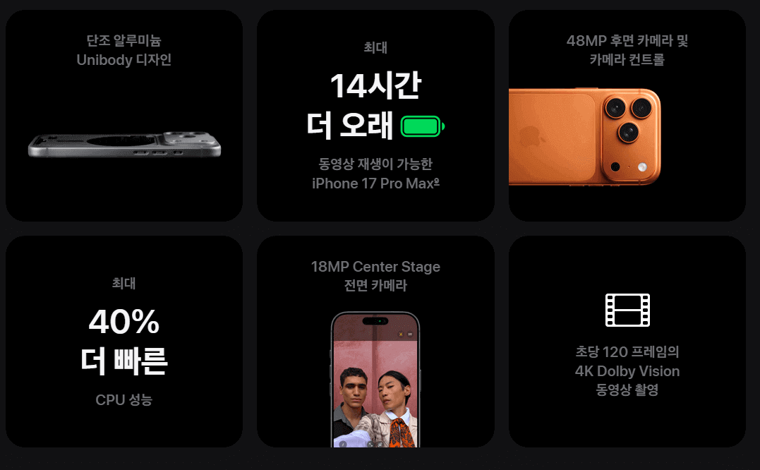 - 아이폰 17 프로 맥스: 대용량 저장 모델(최대 2TB) 제공