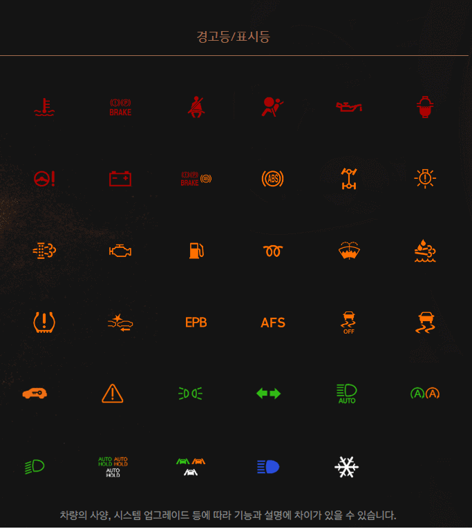 열선시트, 통풍시트, 스티어링 휠 열선, 전자동 조절 방법, 바람 방향 선택, 공기 청정 시스템, 유리창 습기/성에 제거 방법, 오토 디포그, 외부공기 유입 방지 제어 기능