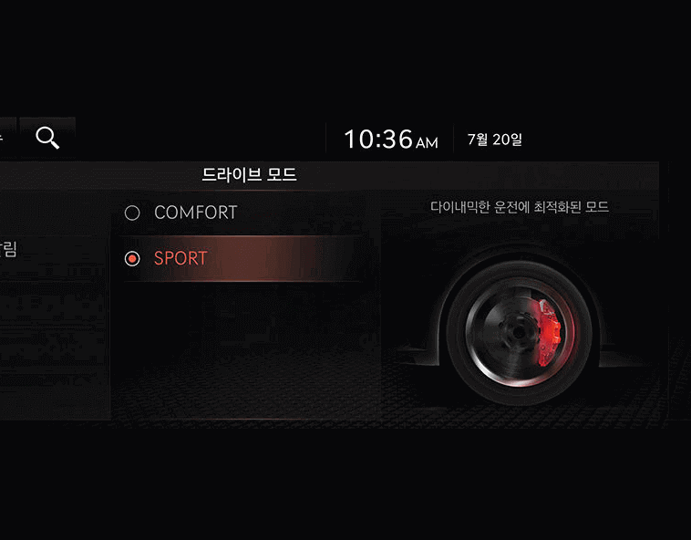 운전자의 성향에 따라 편안하고 안정적인 제동감의 컴포트 모드와 제동 컨트롤 능력을 강조한 스포츠 모드 중에서 선택이 가능합니다.
