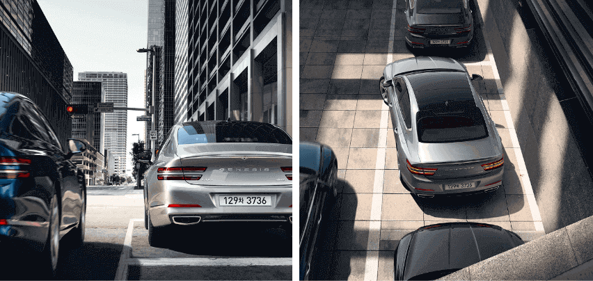 우아하고 역동적인 파라볼릭 캐릭터라인과 제네시스만의 다이내믹하고 슬릭한 측면 디자인은 보는 이들의 시선을 사로잡습니다.