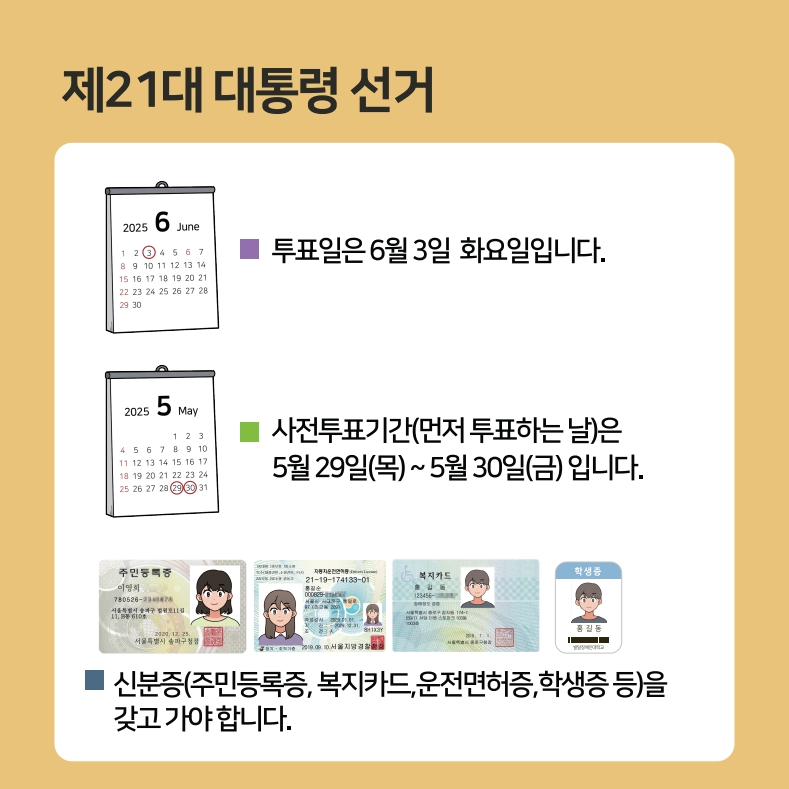 대한민국의 미래를 결정짓는 제21대 대통령선거가 2025년 6월 3일(화)에 실시됩니다. 본투표일에 참석하기 어려운 유권자라면 사전투표를 활용해 소중한 한 표를 행사할 수 있습니다. 이번 글에서