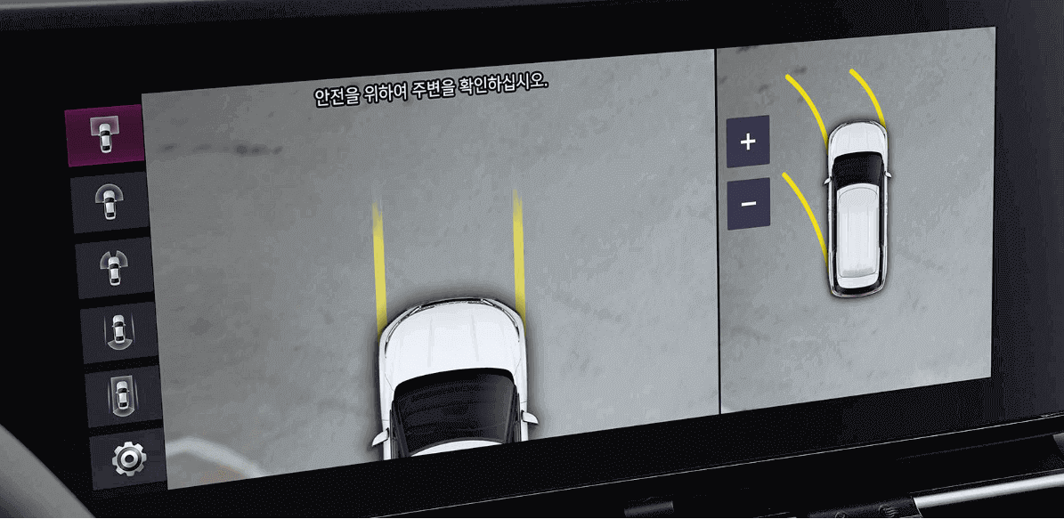 차량 외부에 장착된 4대의 카메라를 통해 주변 상황을 영상으로 보여줌으로써 안전한 주차를 도와줍니다.