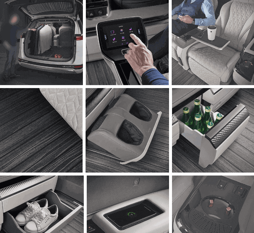 2열 센터에 위치한 7인치 터치식 통합 컨트롤러를 통해 스마트 모니터, 리무진 시트, 발 마사지기 등을 간편하게 컨트롤할 수 있습니다.