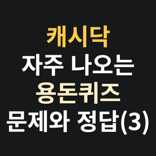 캐시닥 용돈퀴즈에 자주 나오는 문제와 정답 세 번째 모음집입니다. 정답을 맞히면 랜덤으로 캐시가 지급되고, 모아진 캐시로 카페, 베이커리, 외식, 편의점, 문화생활, 명품샾 등에서 필요한 물품을 구매하실 수 있습니다. 열심히 캐시를 모으셔서 2024년에도 소소한 행복을 누리시기 바랍니다. 정답을 참고하셔서 캐시 모으시는데 도움이 되셨으면 합니다.