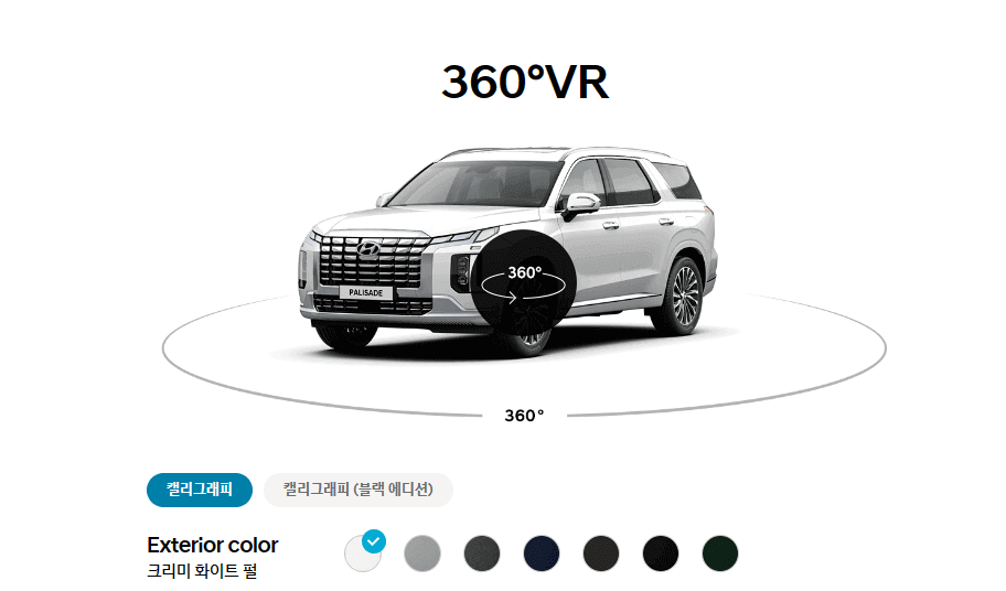 크리미 화이트 펄-쉬머링 실버 메탈릭-그라파이트 그레이 메탈릭-문라이트 블루 펄-가이아 브라운 펄-어비스 블랙 펄-로버스트 에메랄드 펄
