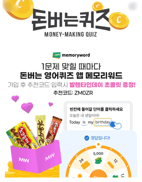 메모리워드에서 가입만 하면 발렌타인데이 초콜렛을 증정한다고 합니다.