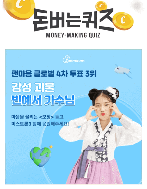 팬마음 글로벌 4차 투표 3위 박서진 문제 정답