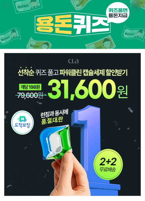 선착순으로 퀴즈를 풀고 클라 라이프케어 파워클린 캡슐세제도 할인받을 수 있다고 합니다. 참고하셔서 필요하신 분들은 구매하셔도 좋을 것 같습니다.