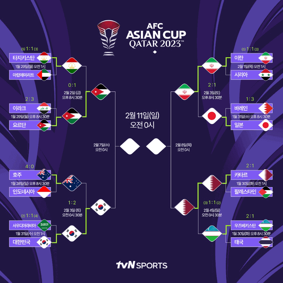 2023 카타르 아시안컵 4강 대진표는 다음과 같습니다.