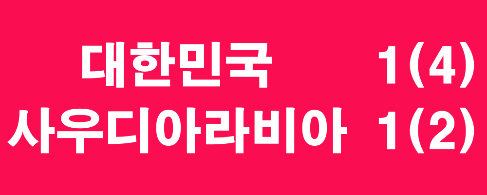 | 01:00 | 사우디아라비아 | 1 (2) | (4) 2 | 대한민국 |