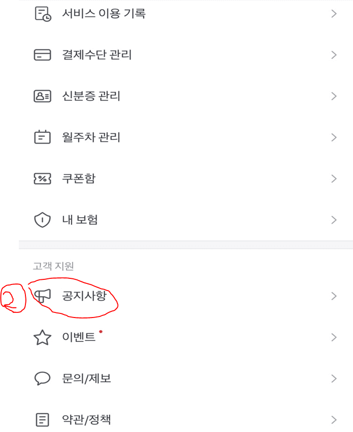 2. 다음과 같은 화면이 나타나면 ②공지사항을 클릭합니다.