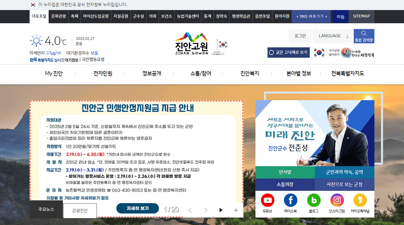 ※ 본 게시글은 2025년 2월 기준으로 작성되었으며, 정책 변경 가능성이 있으니 최신 정보는 진안군청 공식 홈페이지( www.jinan.go.kr ) 나 읍·면 행정복지센터를 통해 확인하시기 바랍니다.