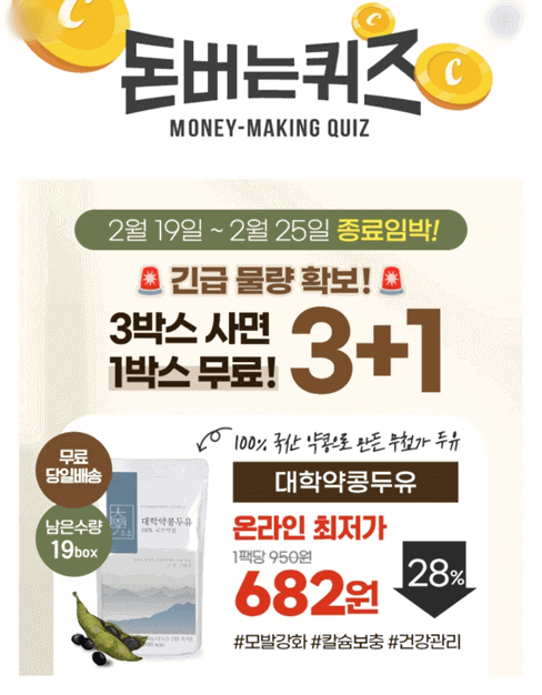 3. 대학약콩두유는 100% 국산 약콩을 사용하여 약콩의 영양이 통째로 들어있습니다. OOO 없이 건강하게 만들어 본연의 맛 그대로 섭취할 수 있고 더욱 고~소하고 진한 맛을 느끼실 수 있습니다!