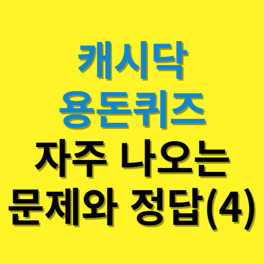 캐시닥 용돈퀴즈에 자주 나오는 문제와 정답 네 번째 모음집입니다. 정답을 맞히면 랜덤으로 캐시가 지급되고, 모아진 캐시로 카페, 베이커리, 외식, 편의점, 문화생활, 명품샾 등에서 필요한 물품을 구매하실 수 있습니다. 열심히 캐시를 모으셔서 2024년에도 소소한 행복을 누리시기 바랍니다. 정답을 참고하셔서 캐시 모으시는데 도움이 되셨으면 합니다.