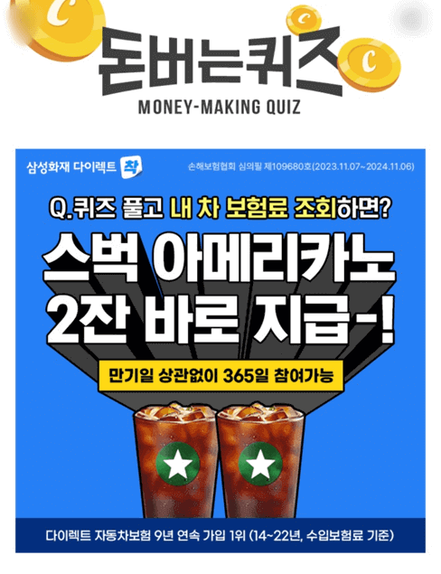 2. 내 차 보험료 확인하면 스타벅스 OOOOO 2잔 지급