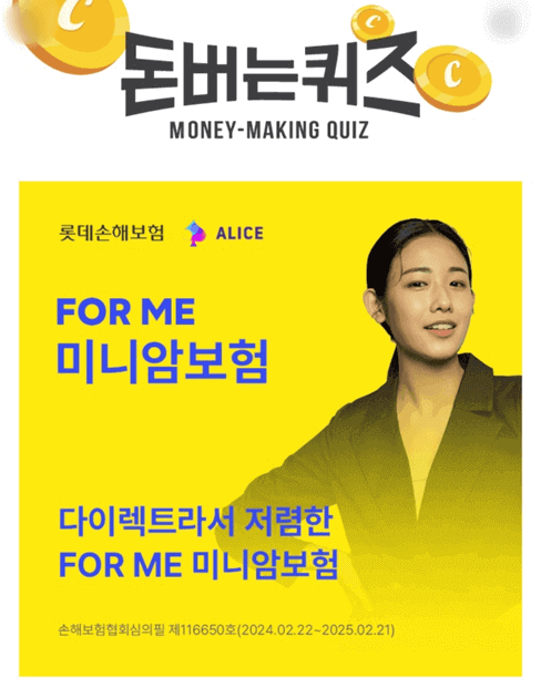 3월 13일 수요일 캐시워크 돈버는퀴즈의 정답에 대해서 안내해 드리겠습니다. 롯데손해보험 ALICE 편의 정답을 맞히면 랜덤으로 캐시가 지급되고, 이 캐시로 캐시딜 상품권, 카페, 베이커리, 외식, 편의점, 문화생활 등에서 필요한 물품을 구매하실 수 있습니다. 2024년에는 대박 나는 한 해 보내시기를 기원합니다.