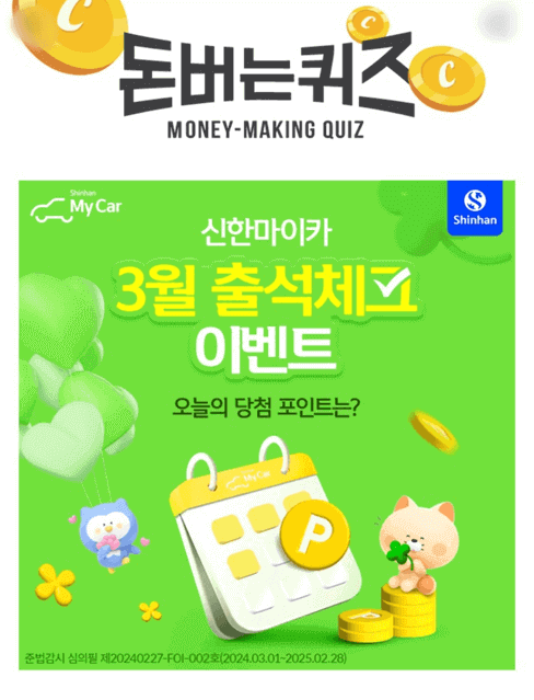 신한마이카 3월 출석체크 이벤트 문제 정답