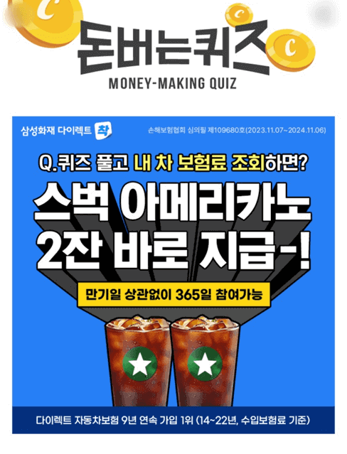 5. 내 차 보험료 확인하면 스타벅스 OOOOO 2잔 지급