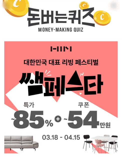 대한민국 대표 리빙 페스티벌인 한샘 쌤페스타에서 3월 18일 월요일부터 4월 15일 월요일까지 약 한달여간 행사를 진행한다고 합니다. 85% 특가와 54만원 상당의 쿠폰 혜택도 주어진다고 하니 관심있으신 분들은 많은 참여바랍니다.