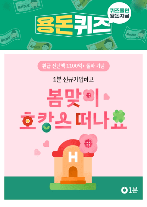 특허받은 전 국민 세금 환급 서비스 '1분', 종합소득세 누적 환급 진단액 1100억 돌파 기념 이벤트를 진행하고 있습니다. 1분에 신규가입하고 봄맞이 호캉스 떠나 볼 수 있는 좋은 기회입니다.