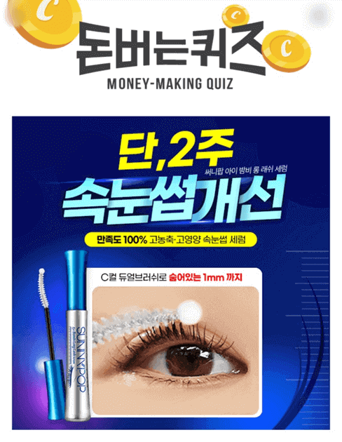 써니팝 아이 밤비롱래쉬 세럼은 단 2주 속눈썹 개선, NEW 출시기념 할인, 고농축+고영양 또렷 눈매, 자극지수 ZERO의 장점을 가지고 있다고 합니다.