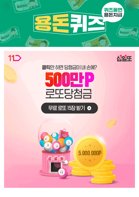 실제 로또번호와 내 십일또 발급 번호가 동일하면 OOO만 포인트를 받을 수 있어요! 매일 접속하고 십일또 번호 발급받아요~! OOO에 들어갈 숫자는 무엇일까요?