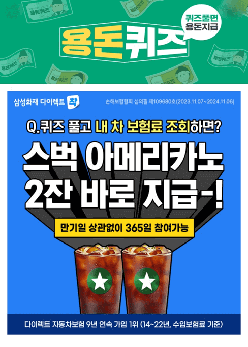 4. 내 차 보험료 확인하면 스타벅스 OOOOO 2잔 지급