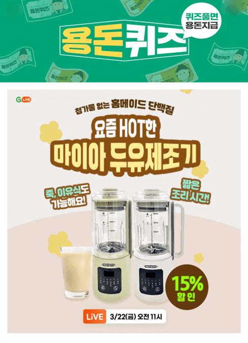 요즘 마이아 두유제조기가 HOT하다고 합니다. 첨가물이 없는 홈메이드 단백질로 죽, 이유식도 가능하고, 조리시간도 짧다고 합니다. 15% 할인행사까지 진행한다고 하니 평소 관심있으셨던 분들은 서두르시기 바랍니다.