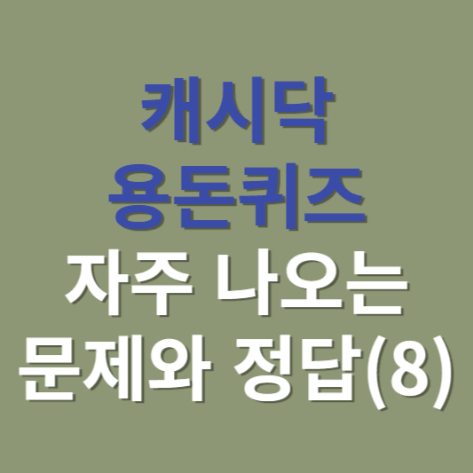 캐시닥 용돈퀴즈에 자주 나오는 문제와 정답 여덟 번째 모음집입니다. 정답을 맞히면 랜덤으로 캐시가 지급되고, 모아진 캐시로 카페, 베이커리, 외식, 편의점, 문화생활, 명품샾 등에서 필요한 물품을 구매하실 수 있습니다. 열심히 캐시를 모으셔서 2024년에도 소소한 행복을 누리시기 바랍니다. 정답을 참고하셔서 캐시 모으시는데 도움이 되셨으면 합니다.