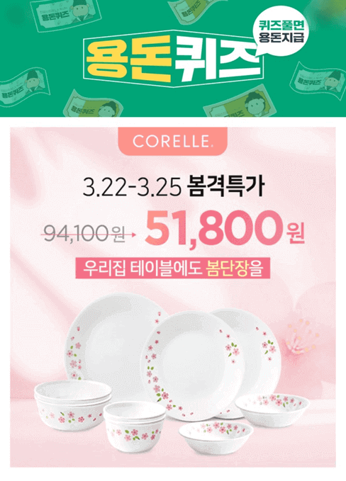 코렐에서 3월 22일 금요일부터 3월 25일 월요일까지 특가를 진행한다고 합니다. 코렐로 우리집의 테이블에 봄단장 해보세요.