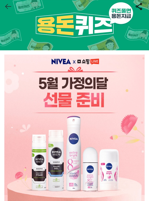 니베아에서 4월 22일 월요일부터 5월 8일 수요까지 N쇼핑과 함께 5월 가정의 달 행사를 진행한다고 합니다.