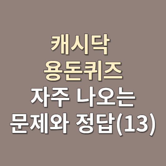 캐시닥 용돈퀴즈에 자주 나오는 문제와 정답 열세 번째 모음집입니다. 정답을 맞히면 랜덤으로 캐시가 지급되고, 모아진 캐시로 카페, 베이커리, 외식, 편의점, 문화생활, 명품샾 등에서 필요한 물품을 구매하실 수 있습니다. 열심히 캐시를 모으셔서 2024년에도 소소한 행복을 누리시기 바랍니다. 정답을 참고하셔서 캐시 모으시는데 도움이 되셨으면 합니다.