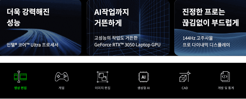 ● AI활용의 정점에 서 있습니다.(NVIDIA GeForce RTX™ 3050 4GB Laptop GPU)
