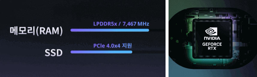 더욱 넓어진 대역폭의 LPDDR5x 메모리와 확장 가능한 듀얼 NVMe SSD로 빠른 속도를 체험할 수 있다고 합니다.