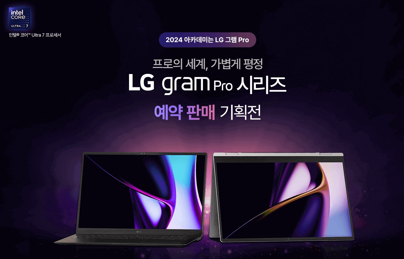 프로의 세계, 가볍게 평정이라는 모토로 LG gram Pro(엘지 그램 프로) 시리즈 예약 판매 기획전이 진행되고 있습니다. 구매기간은 1월 15일 월요일까지이고, 기간 내 대상 제품 구매 후 이벤트에 참여 완료한 고객이 이벤트 페이지에서 구매정보를 등록하면 된다고 합니다. 아래 이미지를 클릭하시면 좀 더 자세한 내용을 살펴보실 수 있습니다.