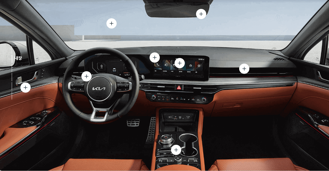 12.3인치 클러스터와 인포테인먼트 시스템을 하나의 화면처럼 연결시킨 통합형 디스플레이로, 기아의 차세대 인포테인먼트 시스템 「ccNC」가 적용되었습니다.