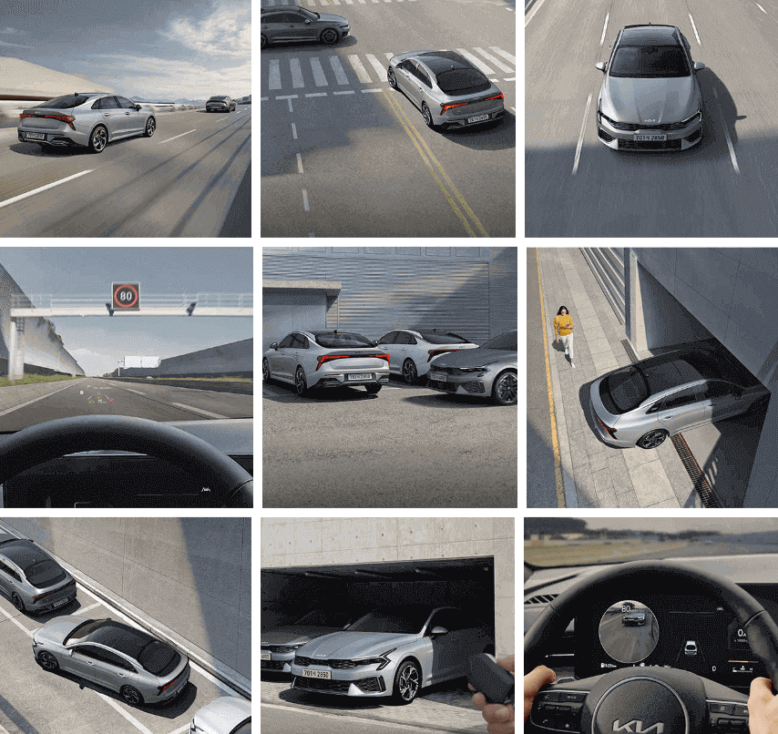 차량 외부에서 스마트키로 원격 전, 후진을 포함해 주차 및 출차를 도와주고 탑승 후 조작 시에는 조향, 차속, 변속을 자동으로 제어하여 주차 및 출차를 보조합니다.